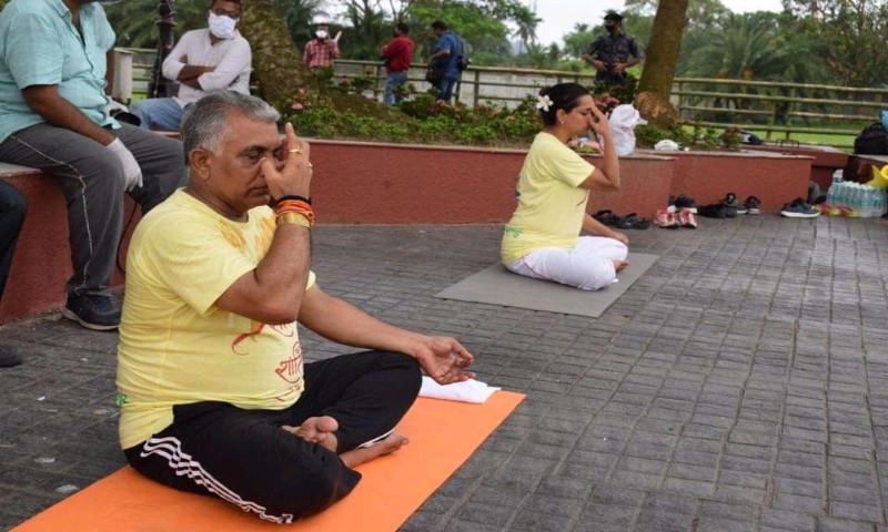 বিজেপির রাজ্য সভাপতি দিলীপ ঘোষ আজ বিশ্ব যোগ...