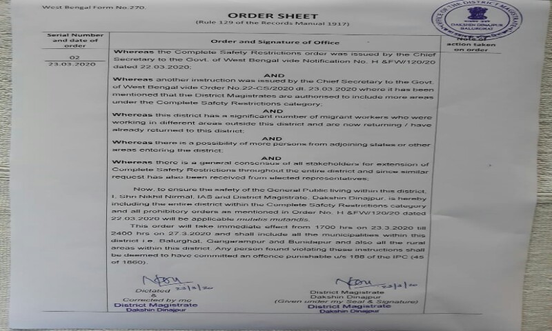 বালুরঘাট ২৩ মার্চ; বিকেল ৫টা থেকে করোনা সতর্কতা...