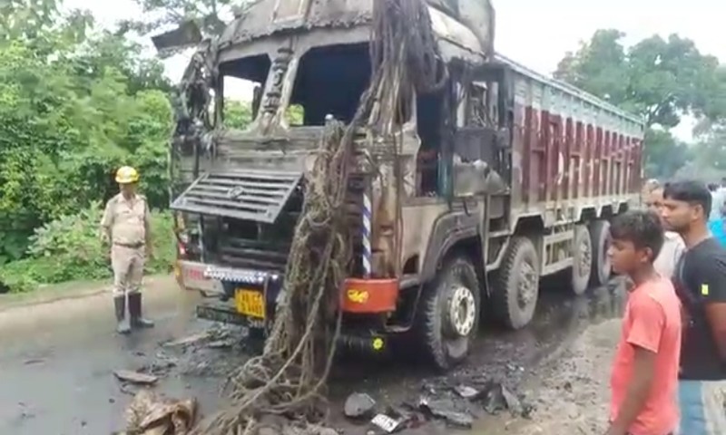 মালা:- ভোরবেলায় পণ্যবাহী লরি এবং মোটর বাইকের মুখোমুখি...