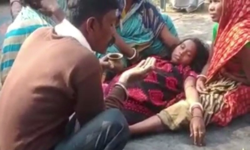 যারা বেশি অসুস্থ ওই গৃহবধূর নাম শ্যামলী মন্ডল।স্বামী শ্যামল মন্ডল।বাললিটোলা গ্রামের বাসিন্দা।গৃহবধূ সাত মাসের অন্তঃসত্ত্বা।শরীরে রক্তের সমস্যা সহ বিভিন্ন রোগে আক্রান্ত। বুধবার সকালে পরিবারের তরফে গুনিন কে ডেকে চলে গৃহবধূর ওপর ঝাড়ফুঁক। এই ঝাড়ফুঁকের নাকি সুস্থ হচ্ছে ওই গৃহবধূ এমনই দাবি পরিবারের। রীতিমতো নিম পাতা ও জল দিয়ে চলে গৃহবধূর ওপর গুনিনের ঝাড়ফুঁক।তবে ঝাড়ফুঁকের এমন ঘটনা প্রকাশ্যে আসতেই চাঞ্চল্য ছড়াল এলাকাজুড়ে। আসরে নামে পুলিশ প্রশাসন। ভুতনি থানার পুলিশ তড়িঘড়ি গৃহবধূকে উদ্ধার করে ভুতনি দিয়ারা প্রাথমিক স্বাস্থ্যকেন্দ্রে ভর্তি করে।