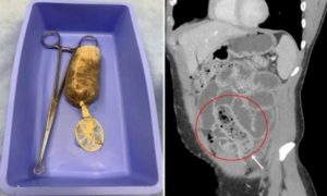 ৩৪ বছর বয়সি এক যুবক পেটে অসহ্য ব্যথা, বমি বমি ভাব ও গা গোলানোর সমস্যা নিয়ে হাসপাতালে ভর্তি হন। ২৪ ঘণ্টারও বেশি সময় ধরে কোনও খাবার ও পানীয় খেলেই তাঁর পাকস্থলীতে তীব্র যন্ত্রণা শুরু হচ্ছিল। চিকিৎসকরা সিটি স্ক্যান করার পর জানতে পারেন, ওই যুবকের ক্ষুদ্রান্তে আটকে রয়েছে কন্ডোম জড়ানো একটি কলা।