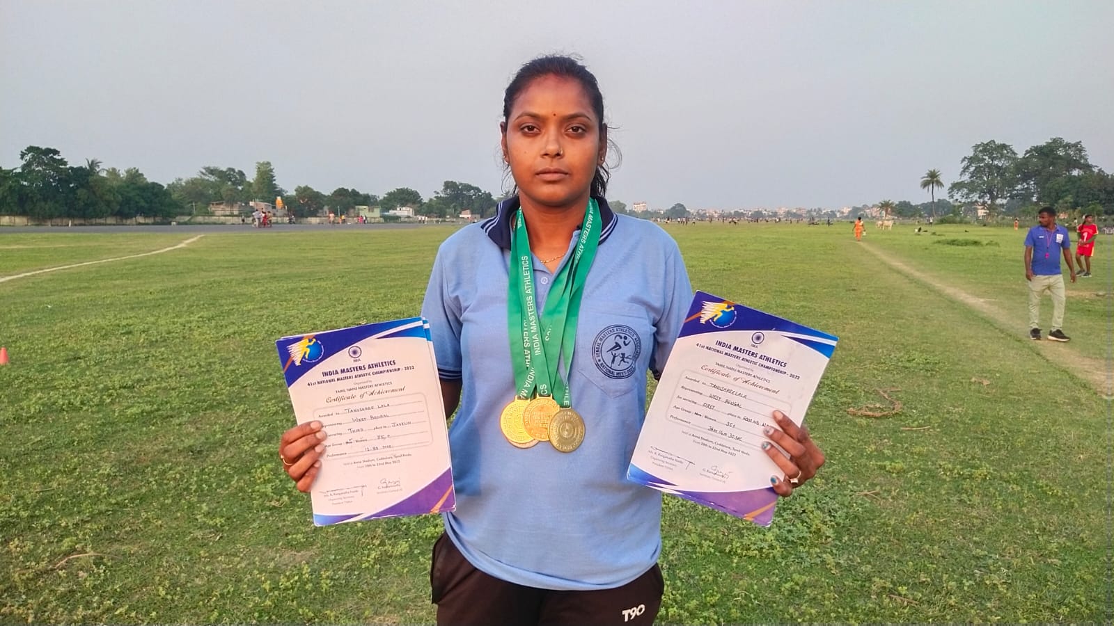 মালদার ইংরেজবাজার শহরের কৃষ্ণপল্লী এলাকার বাসিন্দা পঁয়ত্রিশ বছর তনুশ্রী লালা। প্রাপ্তবয়স্কদের জন্য মোট চারটির মধ্যে তার নিজস্ব ৫ কিলোমিটার ইভেন্ট-প্রতিযোগিতায় সহ আরও দেড় হাজার মিটার দৌড় প্রতিযোগিতায় প্রথম স্থান অধিকার করেছেন। পাশাপাশি জ্যাভলিন থ্রো তে তৃতীয় স্থান পেয়েছেন । মোট চারটি সোনা ও একটিতে ব্রঞ্চ পেয়ে জেলা তথা রাজ্যের নাম উজ্জ্বল করেছেন তনুশ্রী লালা। আগামী দিনে আন্তর্জাতিক স্তরে খেলার ছাড়পত্র পেলেন মালদার তনুশ্রী লালা। চলতি বছরে ইন্দ্রোনেশিয়ায় আন্তর্জাতিক মাস্টার্স চাম্পিয়নশিপ অনুষ্ঠিত হবে। সেখানে অংশগ্রহণ করতে চলেছে তনুশ্রী লালা। তারজন্য প্রতিদিন নিয়মিত মালদা শহরের বিমানবন্দরের ময়দানে অনুশীলন করছেন। তাকে অনুশীলন দিচ্ছেন তার কোচ অসিত পাল।