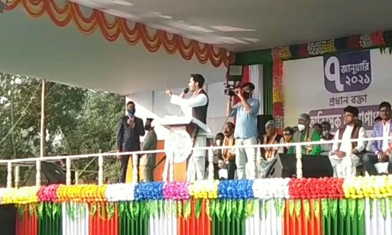 জয়দীপ মৈত্র,দক্ষিণ দিনাজপুরঃ চলতি মাসের গত ৪ তারিখে উত্তরবঙ্গ সফরে এসেছেন সর্বভারতীয় তৃণমূল কংগ্রেসের যুব সভাপতি তথা সাংসদ অভিষেক বন্দ্যোপাধ্যায়। বিধানসভা নির্বাচনের পূর্বে দলীয় সংগঠনকে কার্যত চাঙ্গা করতে বৃহস্পতিবার দক্ষিণ দিনাজপুর জেলার গঙ্গারামপুর স্টেডিয়ামে এক বিশাল জনসভা করতে এলেন সাংসদ অভিষেক বন্দ্যোপাধ্যায়। জেলার মোট ৬ টি বিধানসভাকে জোড়া ফুলে মুড়িয়ে দিতে ও ড্যামেজ কন্ট্রোল করতেই এই বিশাল জনসভা। প্রসঙ্গত, ২০১৯ সালে দক্ষিণ দিনাজপুর জেলায় লোকসভা নির্বাচনের ফলাফল খারাপ হয় তৃণমূল কংগ্রেসের, এরপরই জেলায় তৃণমূল কংগ্রেসের নানান পদের রদবদল হয় তার সাথে বরাবরই দক্ষিন দিনাজপুর জেলায় তৃণমূল কংগ্রেসের গোষ্ঠী কোন্দলের কথা বারবার উঠে এসেছে। তাই ২০২১ সালের বিধানসভা নির্বাচনকে পাখির চোখ করে সমস্ত রাগ-অভিমান ভূলে জেলায় ৬ টি বিধানসভায় জিতে তা উপহার স্বরূপ দেওয়ার সাথে-সাথেই মমতা বন্দ্যোপাধ্যায়কে তৃতীয় বারের মতন মুখ্যমন্ত্রী বানাতে ও দলকে চাঙ্গা করতে হাতে হাত রেখে নির্বাচনী ময়দানে নামার আহ্বান জানিয়ে এদিন দুপুরে প্রথমে দক্ষিণ দিনাজপুর জেলার বুনিয়াদপুর সার্কিট হাউসে এক কর্মীসভা করার পর বেলা প্রায় ৩ টায় গঙ্গারামপুর স্টেডিয়ামে জনসভায় উপস্থিত হন সাংসদ অভিষেক বন্দ্যোপাধ্যায়। জেলা তৃণমূল কংগ্রেসের নেতৃত্বরা জানিয়েছিলেন ২ লক্ষ মানুষের সমাগম ঘটবে এই জনসভায়। এদিন সেকথা সত্যি করে গঙ্গারামপুর স্টেডিয়ামে প্রচুর মানুষের সমাগম ঘটে। উপস্থিত ছিলেন দক্ষিণ দিনাজপুর জেলার তৃণমূল কংগ্রেসের সভাপতি গৌতম দাস, প্রাক্তন জেলা সভাপতি বিপ্লব মিত্র, জেলা তৃণমূল কংগ্রেসের চেয়ারম্যান শঙ্কর চক্রবর্তী, জেলা যুব তৃণমূলের সভাপতি অম্বরিশ সরকার, জেলা ছাত্র পরিষদের সভাপতি অতনু রায়, ললিতা টিগ্গা, প্রশান্ত মিত্র, তোরাব হোসেন মণ্ডল, অশোক বর্ধন, অমলেন্দু সরকার সহ আরো অন্যান্য বিশিষ্ট ব্যক্তিবর্গরা। উপস্থিত সকল বিশিষ্টরা একে একে তাদের বক্তব্য রাখেন। এরপরই অভিষেক বন্দ্যোপাধ্যায় তার বক্তব্য শুরু করেন। বক্তব্য শুরুতেই তিনি কেন্দ্রের ক্ষমতায় থাকা বিজেপিকে এক হাত নিলেন। বহিরাগত ইস্যুতে বিজেপিকে আক্রমণ করেন অভিষেক বন্দ্যোপাধ্যায়। গঙ্গারামপুরের সভা থেকে অভিষেক বলেন, ‘‘এই সব বহিরাগতরা ভোটের পর রাজ্য থেকে পালিয়ে যাবে।’’ ‘তোলাবাজ ভাইপো’ আক্রমণের জবাবও দিয়ে শুভেন্দুকে পাল্টা তোলাবাজ বলে কটাক্ষ করেছেন তৃণমূল সাংসদ। তৃণমূল কংগ্রেস থেকে বিজেপিতে যাওয়া শুভেন্দু অধিকারি প্রসঙ্গে তিনি বলেন “সব চোরেরা চোরের দলে গেছে”, তিনি বলেন মুখ্যমন্ত্রী মমতা বন্দ্যোপাধ্যায় এই কয়েক বছর রাজ্যের মানুষের জন্য যা করেছে তা প্রধানমন্ত্রী 