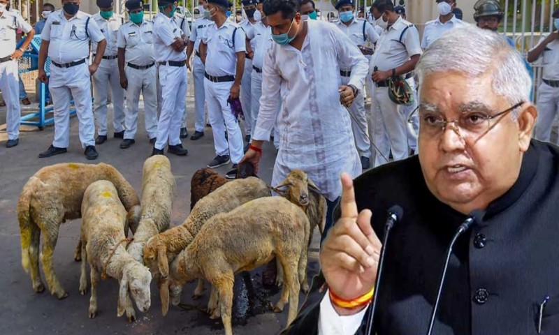 রাজভবনের সামনে ভেড়ার পাল নিয়ে বিক্ষোভ! বিকেল ৫ টার মধ্যে রিপোর্ট তলব রাজ্যপালের