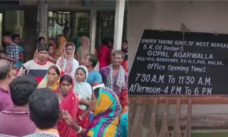 অভিযোগ পোকা দেওয়া চাল এবং আটাও নিম্নমানের। খেলে কিচকিচ করে। এদিন লাইনে দাঁড়াতে গিয়ে হুড়োহুড়ি পড়ে যায়। রেশন নিতে আসা মানুষদের অভিযোগ ৪০ জনের বেশি রেশন দেওয়া হবে না। এই ফতোয়া জারি করেন রেশন ডিলার গোপাল আগারওয়াল। এমনিতেই মাসে একদিন দুদিনের বেশি দোকান খোলেন না রেশন ডিলার। এতেই ক্ষিপ্ত হয়ে ওঠে রেশন নিতে আসা গ্ৰাহকেরা।