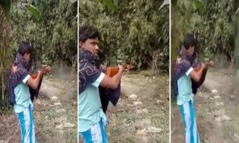 বাংলা হান্ট ডেক্সঃ দিনে-দুপুরে গ্রামের বুকে গুলি চালাচ্ছেন স্বয়ং তৃণমূলের গ্রাম পঞ্চায়েত প্রধানের দেওর তথা তৃণমূল নেতা। পাশ থেকে আবার অনেক উৎসাহ যোগাচ্ছেন। আর তাঁকে বাধা দেওয়া দূরস্ত শিখিয়ে দিচ্ছেন কেমন করে চালাতে হয়। মালদার হরিশ্চন্দ্রপুরের এমনই এক ভিডিয়ো সোশ্যাল মিডিয়ায় ভাইরাল হয়েছে। যা নিয়ে এলাকায় চাঞ্চল্য ছড়িয়েছে। যদিও এই ভিডিয়োর সত্যতা যাচাই করেনি বাংলা হান্ট ডিজিটাল। তবে ওই তৃণমূল নেতাকে গ্রেফতার করেছে হরিশ্চন্দ্রপুর থানার পুলিশ। এই ঘটনায় চরম অস্বস্তিতে পড়েছে শাসকদল।