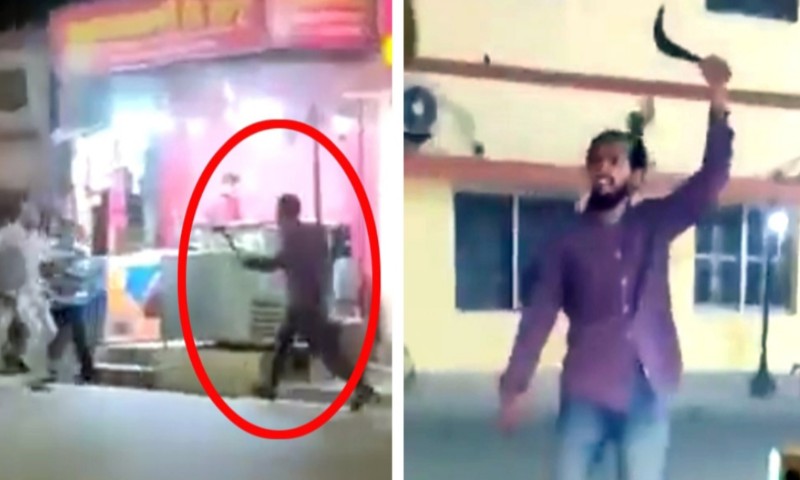 এই ঘটনার একটি ভিডিয়ো প্রকাশ্যে এসেছে। সেই ভিডিয়োয় দেখা যাচ্ছে কাটারি হাতে ধর্মীয় স্লোগান দিচ্ছেন ওই যুবক। কেউ তাঁকে আটকাতে গেলে কাটারি হাতে তেড়ে যাচ্ছেন তিনি। পুলিশ সূত্রে জানা গিয়েছে, যুবকের নাম আহমেদ মুর্তজা আব্বাসি।