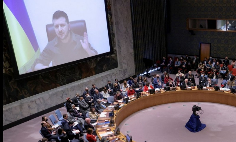 রাষ্ট্রপুঞ্জের নিরাপত্তা পরিষদে ভার্চুয়াল বক্তৃতায় হানাদার রুশ ফৌজের বিরুদ্ধে গণহত্যার অভিযোগ এনে ইউক্রেনের প্রেসিডেন্ট ভলোদিমির জেলেনস্কি বলেন, ‘‘শুধুমাত্র ফুর্তির জন্য রুশ সেনা ইউক্রেন জুড়ে হত্যালীলা চালাচ্ছে!’’ নিরাপত্তা পরিষদের রাশিয়ার সদস্য পদ বাতিলের আহ্বান তিনি।